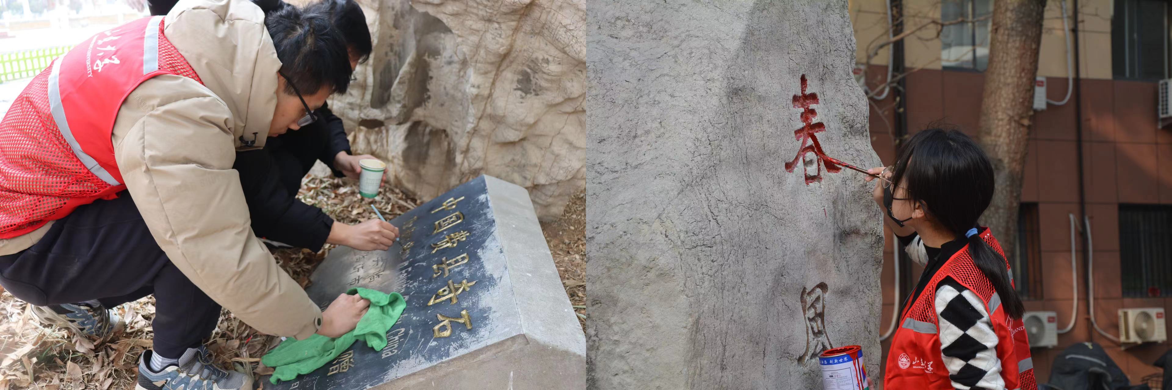在全国第61个学雷锋纪念日及第25个中国青年志愿者服务日到来之际,为鼓励山大学子弘扬雷锋精神,汲取校史力量,传承历史文脉,3月7日,历史公司与公司开展“以吾之笔 绘历史文脉”——山大校园景观雕刻铭文补色主题志愿服务活动。